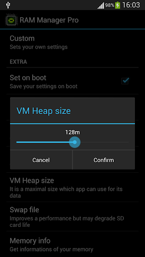 - Default - This option reverts your RAM to your default settings, which you had before you installed this app.